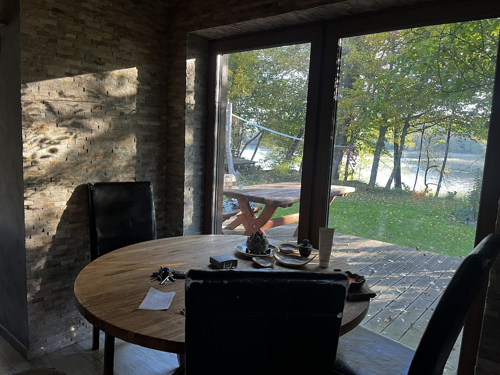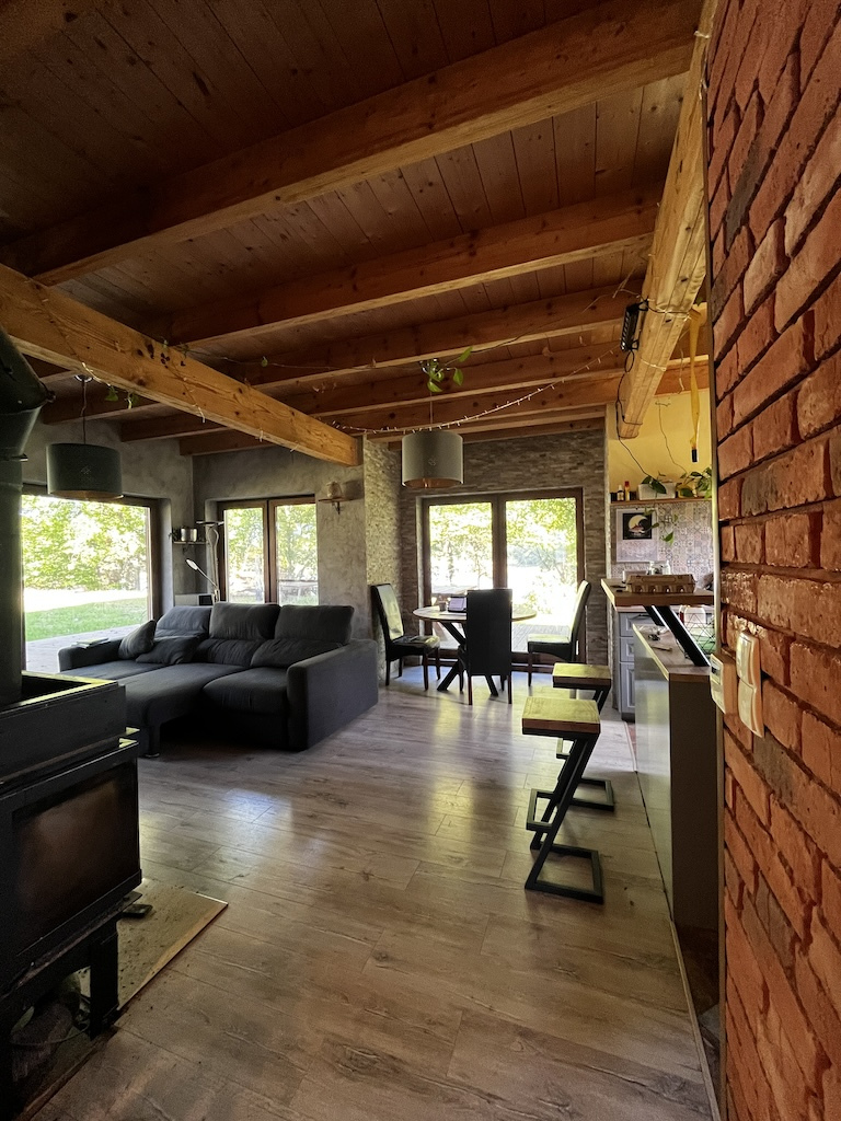 Dom zlokalizowany jest na obszarze NATURA 2000 „Dolina Stropnej”. Zapewnia prywatność, ciszę i spokój. Wychodząc na taras, jezioro jest w odległości zaledwie 20 metrów. Las w odległości 10 metrów. Brak sąsiedniej zabudowy. Miejsce nasze dedykujemy dla osób aktywnie spędzających czas, ceniących sobie bliskość natury i szukających relaksu na jej łonie. Nie jest to miejsce do organizowania imprez. Wokół domu od strony jeziora jest zadaszony taras o powierzchni ponad 50 m2. Idealne miejsce do porannej jogi przy śpiewie ptaków oraz słońcu przebijającym się przez szumiące drzewa.